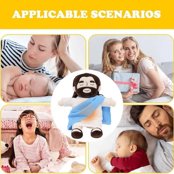 The breathing Jesus plush can be used as great baptismal gifts for boys or girls, as their guardian plush, or as a baby's first stuffed animal or prayer doll to keep them company. Jesus Stuffed Animal can also comfort children who have experienced hardship and ease anxiety and depression.