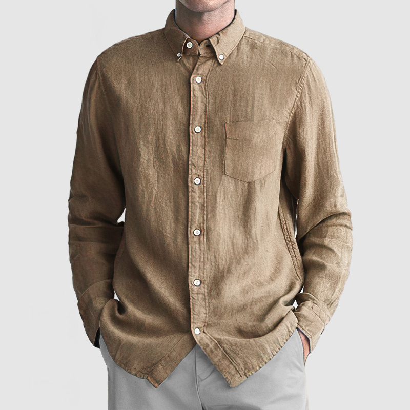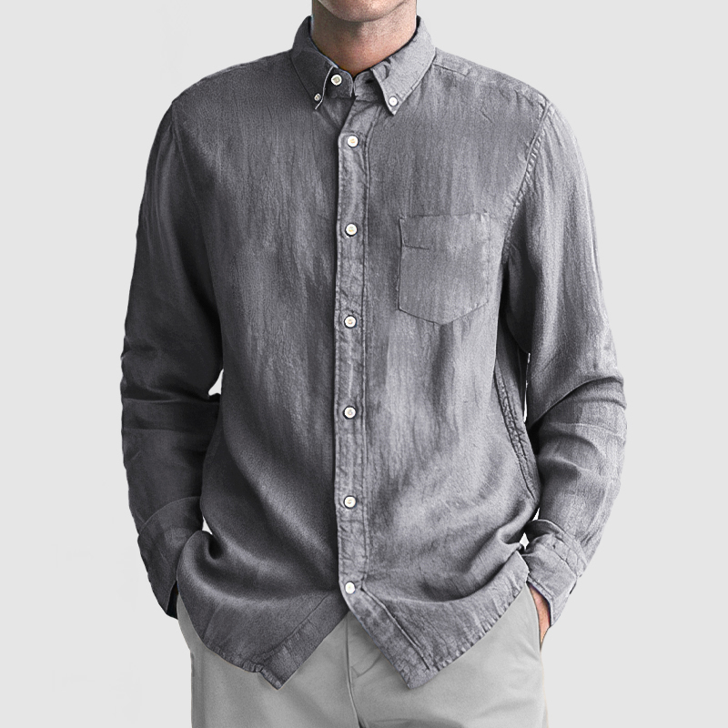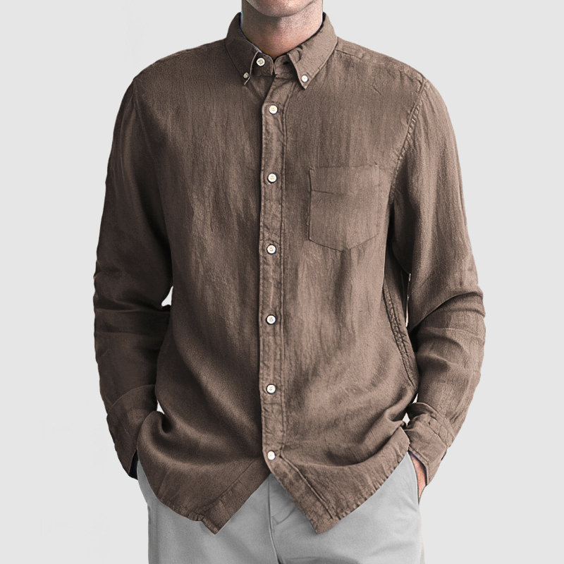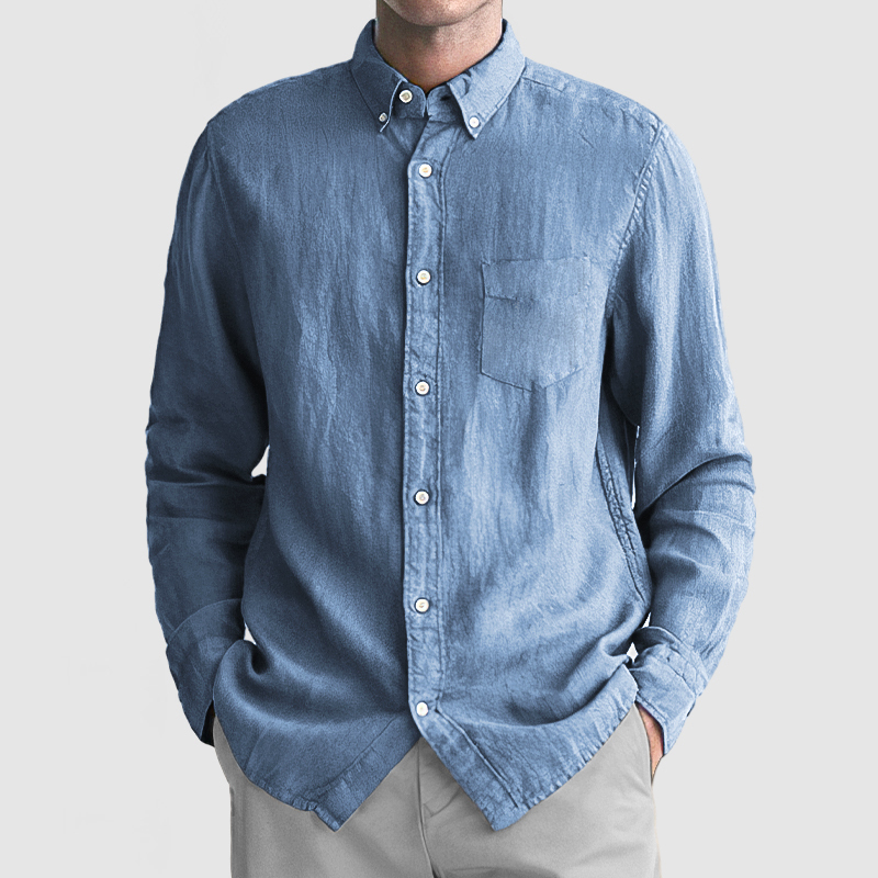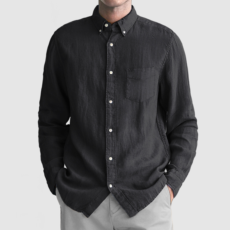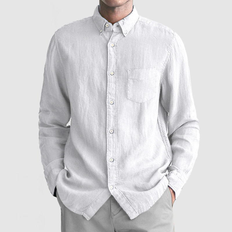 This shirt has a business-casual style element and is made from Cotton And Linen, which is extremely breathable. The sharp, tailored design of the collar and sleeves with sleek white buttons makes this shirt simple and uncluttered! This shirt goes well with any outfit, which will all be the finishing touch! Whether for outdoor sports, leisure activities or social gatherings, this shirt will keep you elegant and gentlemanly for a long time.