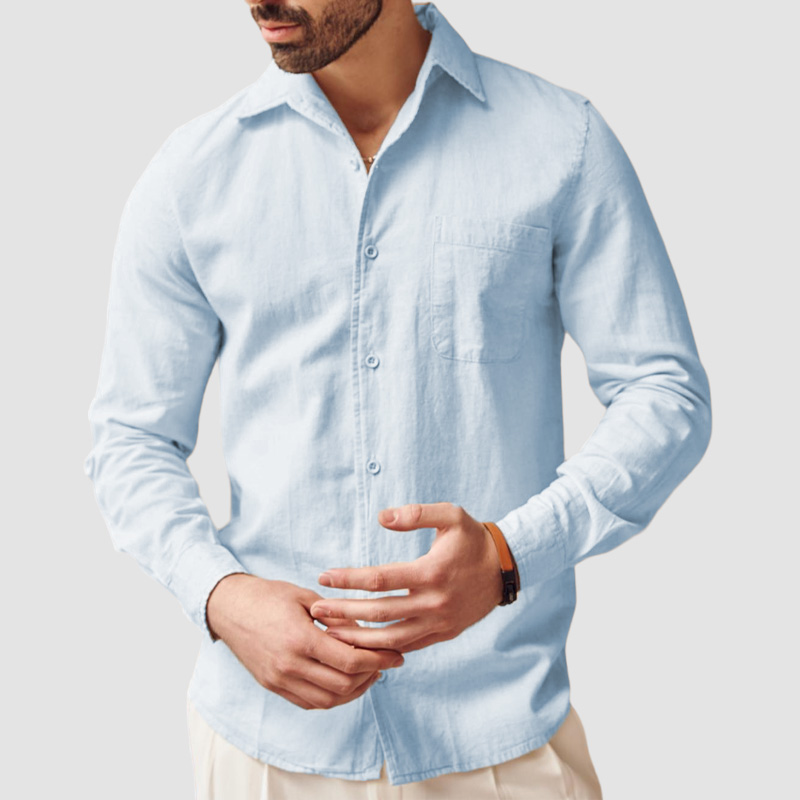 This shirt has a business-casual style element and is made from Cotton And Linen, which is extremely breathable. This shirt is made of natural and breathable cotton and linen fabric, the texture of the fabric emphasizes the sense of quality. The soft and skin-friendly touch brings you endless comfort! Whether for outdoor sports, leisure activities or social gatherings, this shirt will keep you elegant and gentlemanly for a long time.